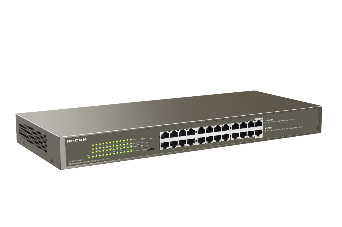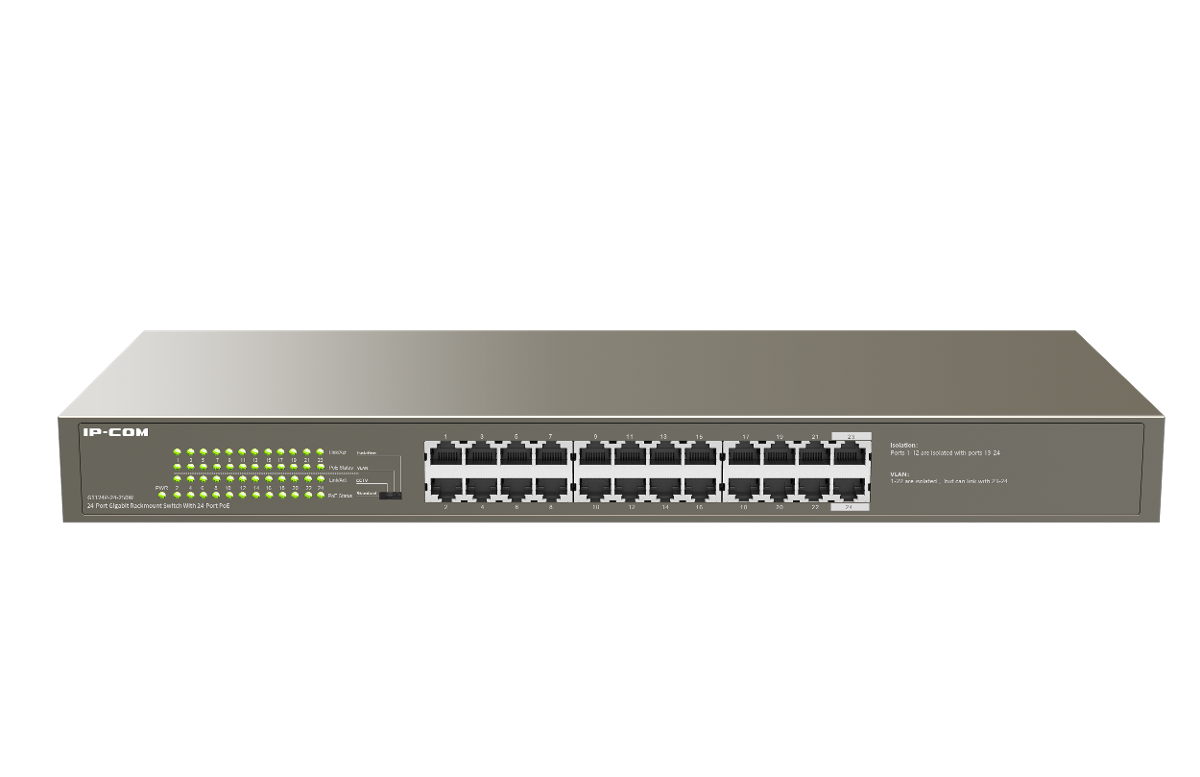 SWITCH (สวิตซ์) IP-COM G1124P-24-250W 24 10/100/1000Mbps with 24 PoE Port, Power Budget 255W (รับประกัน 3 ปี)