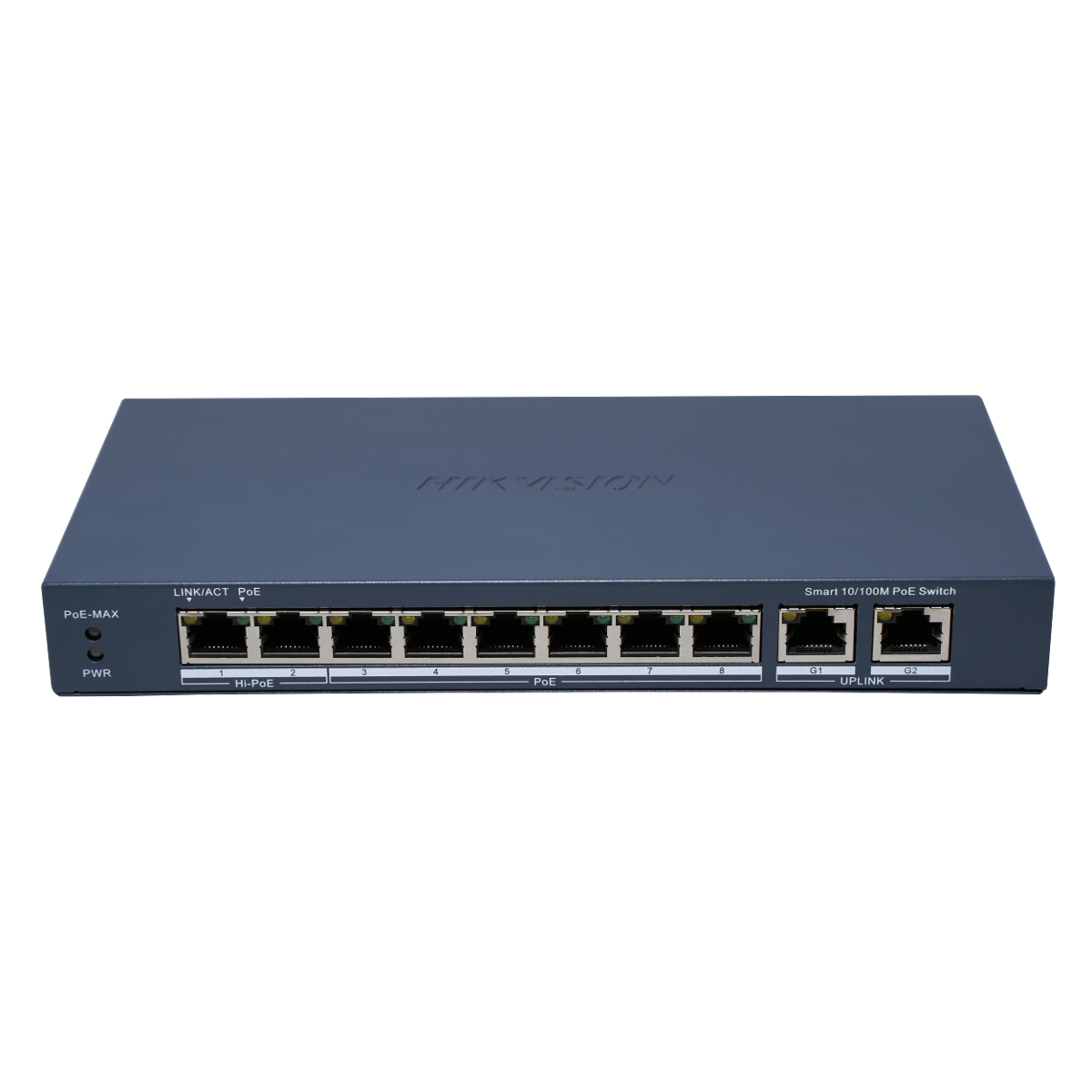 SWITCH (สวิตซ์) HIKVISION DS-3E1310HP-EI(B) 8 Port Fast Ethernet Smart POE Switch, 8 x 10/100M PoE Ports, 2 x Gigabit Uplink Ports, Total PoE Power Budget 110W