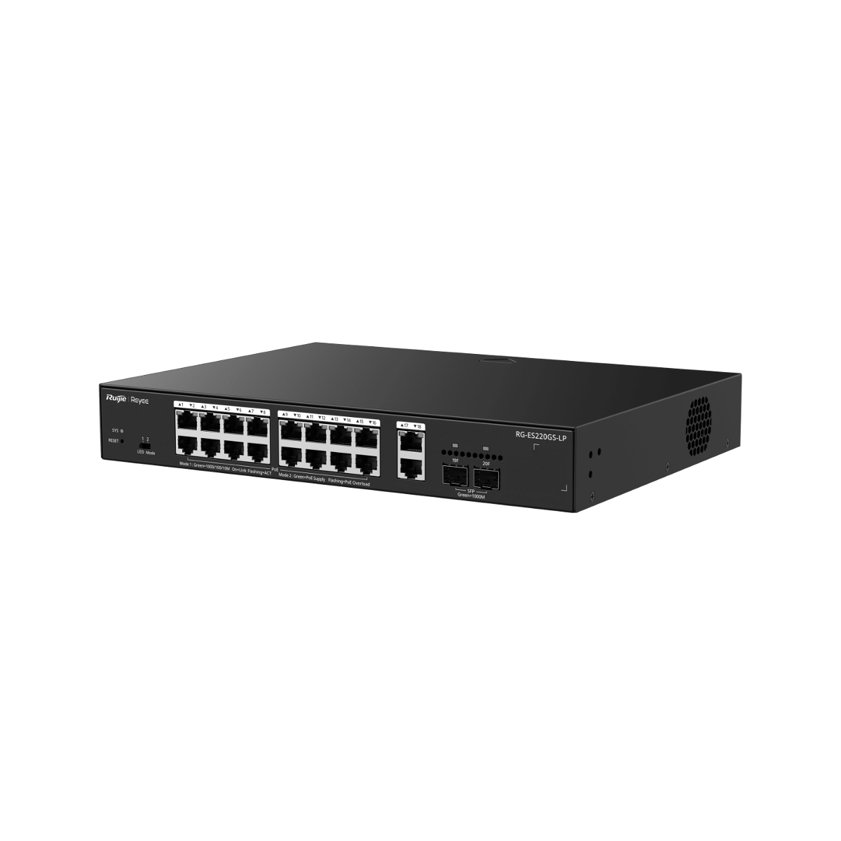 SWITCH (สวิตซ์) Ruijie RG-ES220GS-LP 28-Port Gigabit Smart POE Switch, 24 PoE/POE+ Gigabit RJ45 Ports with 2 Gigabit RJ45/2 SFP uplink ports, 370W PoE power budget (รับประกัน 3 ปี)